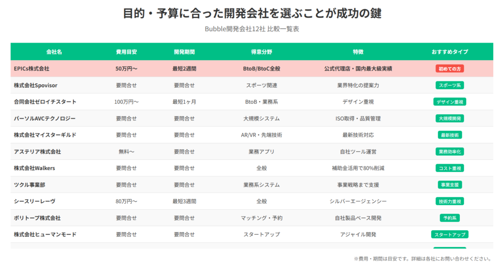 === 【大規模開発向け】本当におすすめなBubble開発会社 ===
