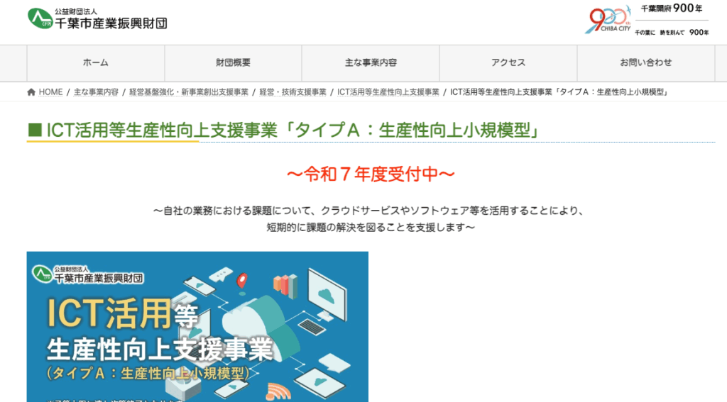 千葉市内に事業所を持つ中小企業は、市独自の「ICT活用等生産性向上支援事業」を利用できます。この補助金には2つのタイプがあり、タイプA(小規模型)は上限100万円、タイプB(大規模型)は上限350万円の支援を受けられる制度です。