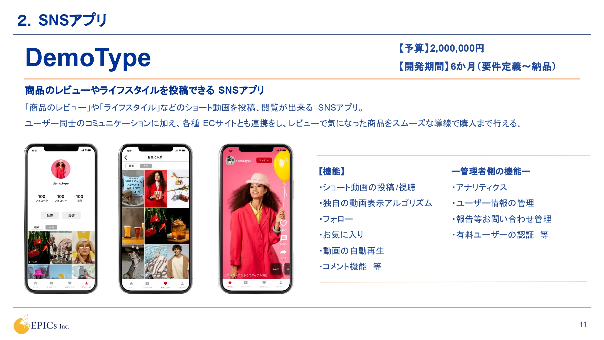マッチングアプリやSNSアプリ、業務アプリなど多様な開発事例を、実装した機能や開発期間・予算とともにご紹介しています。