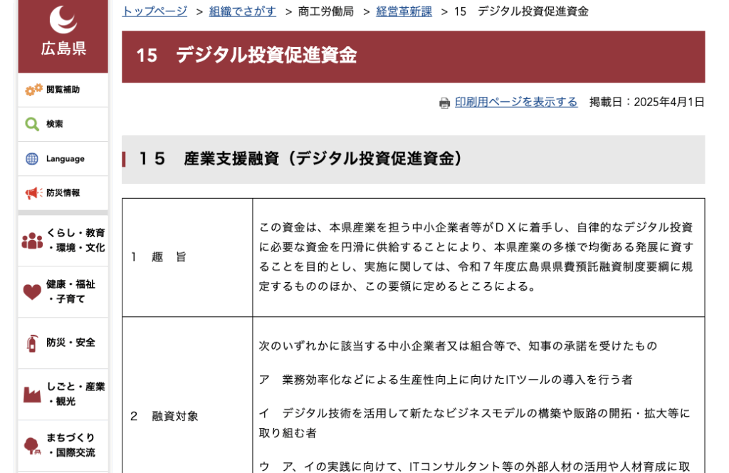 広島県庁のデジタルトランスフォーメーション推進担当に問い合わせることで、詳細な融資条件や申請方法を確認できるため、事前相談をおすすめします。