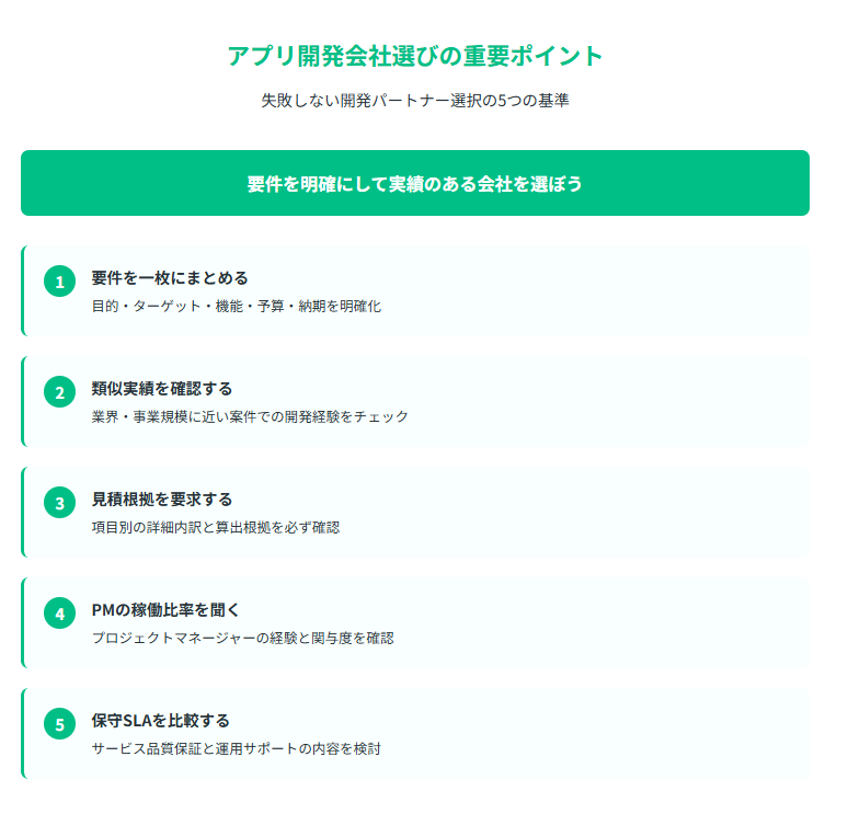 板橋区でアプリ開発会社を選ぶ際に押さえておきたい重要なポイントを5つご紹介します。
