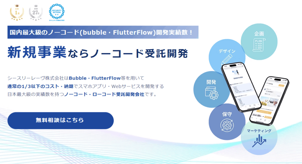 シースリーレーヴ株式会社は、港区に拠点を構え、FlutterFlowを中心としたノーコード・ローコード開発に特化した企業です。ローコードとは、少しのプログラミングで高機能なアプリを効率的に開発する手法。同社はFlutterFlowの独自プラグイン開発も手がけるなど、技術力の高さが際立っています。