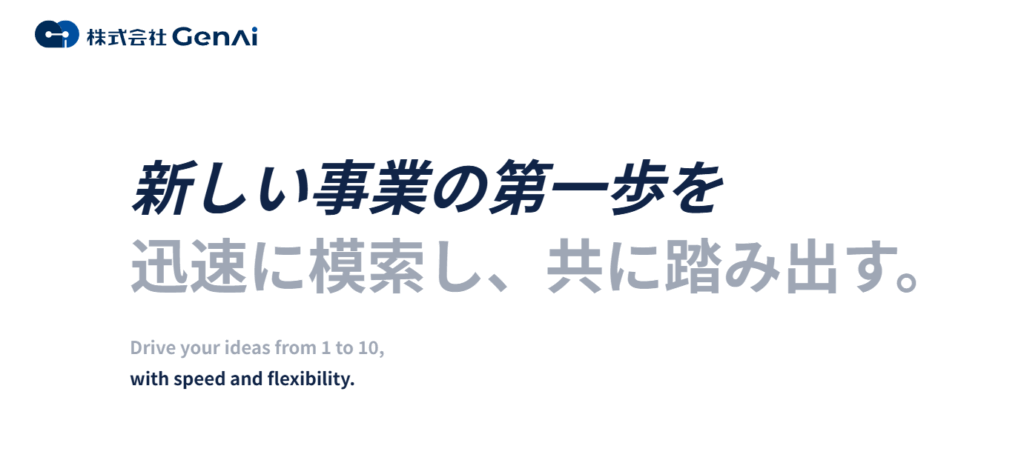 株式会社GenAiは、渋谷区に本社を構える次世代型の開発会社です。社名の通り、生成AI(人工知能)とローコード技術を組み合わせた「ブレンド開発」を得意としています。従来の開発期間を3分の1程度に短縮できるのが大きな特徴で、スピード重視の案件に最適です。