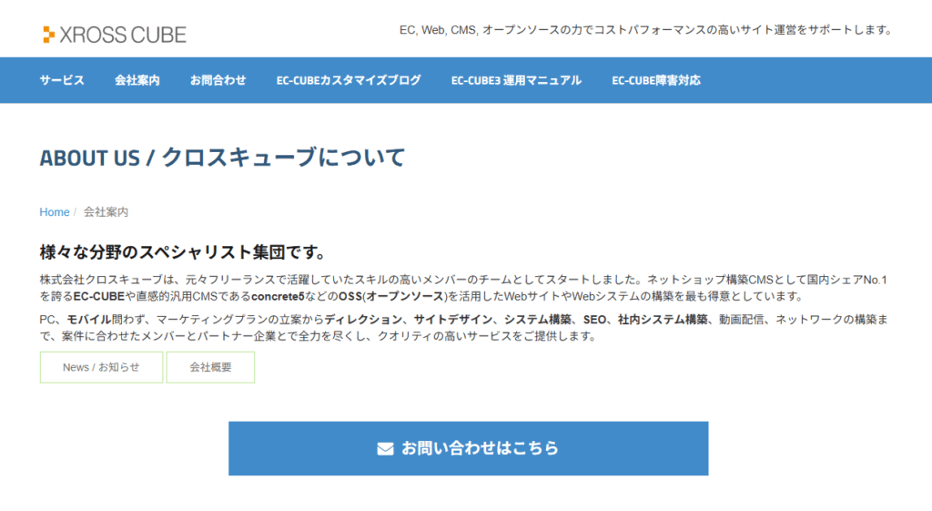 株式会社クロスキューブは、板橋区に本社を構えるECサイト構築のスペシャリスト企業です。EC-CUBEの公式インテグレートパートナーとして認定されており、ECサイトの構築・カスタマイズにおいて国内トップクラスの技術力を誇ります。EC-CUBEとは、日本で最も普及しているオープンソースのECサイト構築システムのことです。