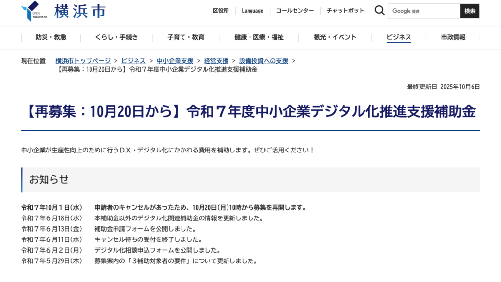 - 横浜市「中小企業デジタル化推進支援補助金」
