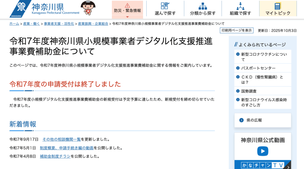 - 神奈川県「小規模事業者デジタル化支援推進事業費補助金」